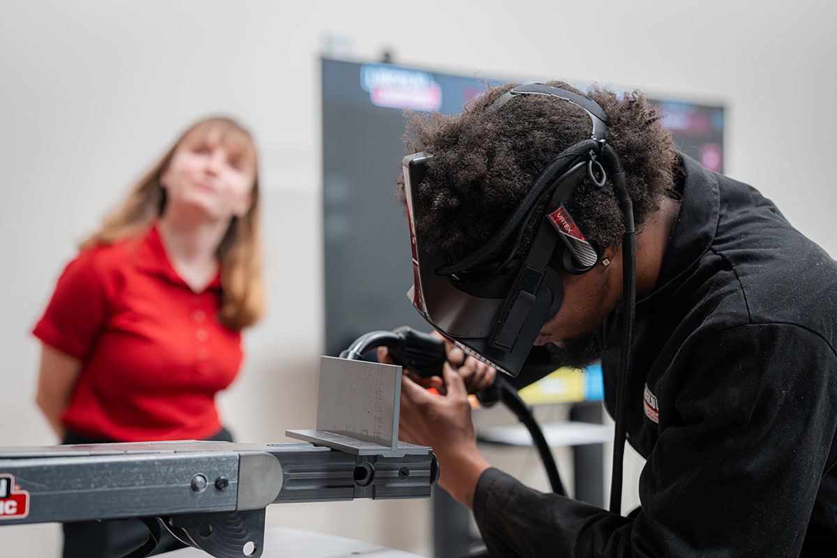 City of Refuge student using the center’s new virtual welding simulator